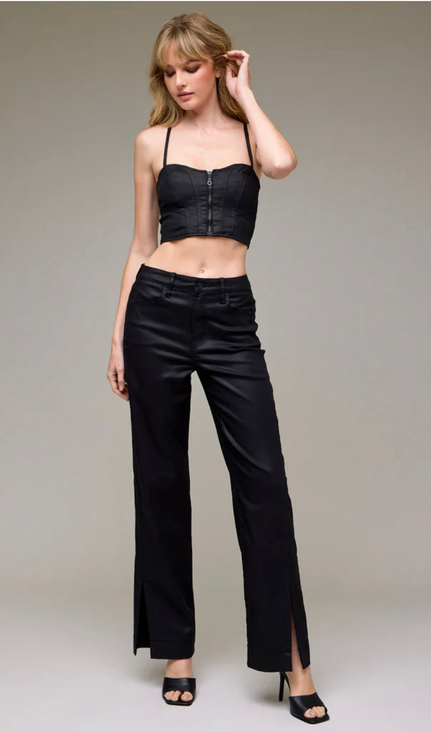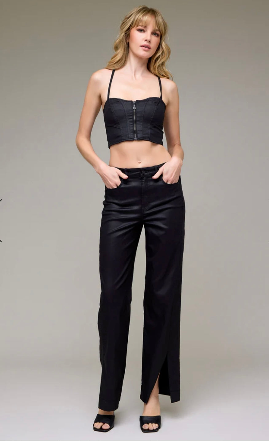 Meet Tracey, your new denim obsession! These classic jeans feature stretchy, coated premium denim that moves with you while keeping that polished look. With a flattering 11" front rise and 14" back rise, plus a 31" inseam, they're designed to fit just right. five functional pockets, and belt loops complete the package. The side slit detail adds just enough edge to keep things interesting. Comfort meets style in every wear.