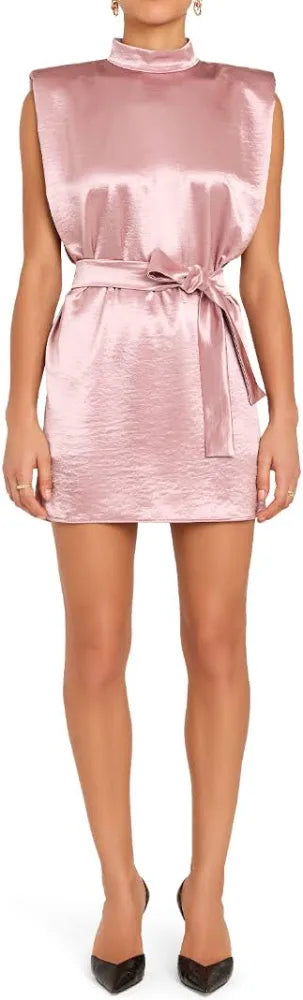 Turn heads in the Cleary Dress by Amanda Uprichard—a chic mini that's equal parts bold and refined. Structured padded shoulders give you that power-dressing edge, while a charming front tie detail keeps things fun and flirty. Perfect for anyone ready to serve sophistication with a side of personality.