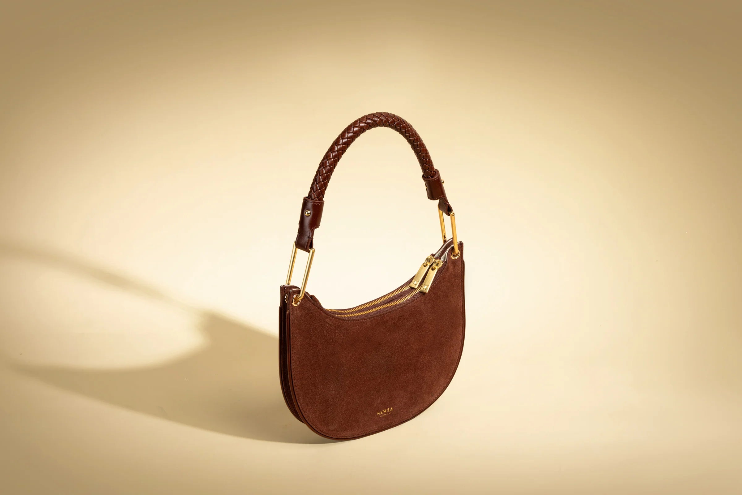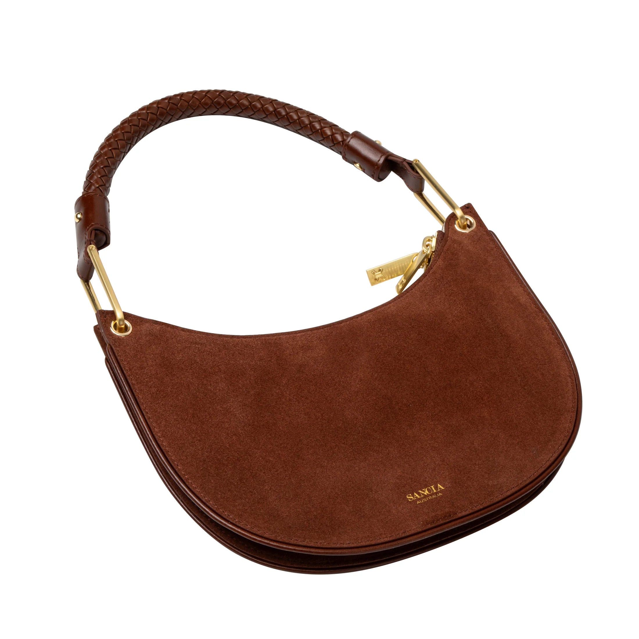 Eternally chic and ready to become your new event accessory, the Altura is a double pouch half-moon shape made in the perfect size to accompany you on a night out. The slender silhouette fits comfortable under the shoulder and features a stunning leather-braided handle.