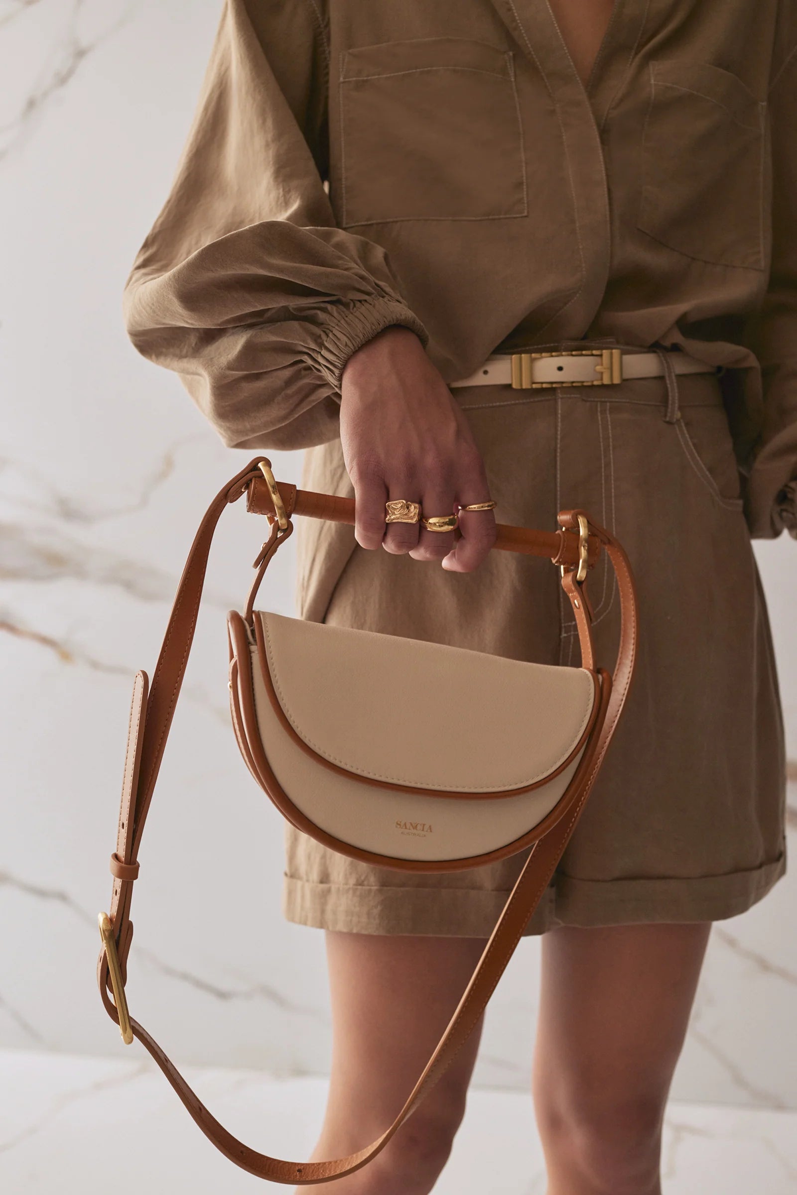 - Brushed gold custom SANCIA hardware