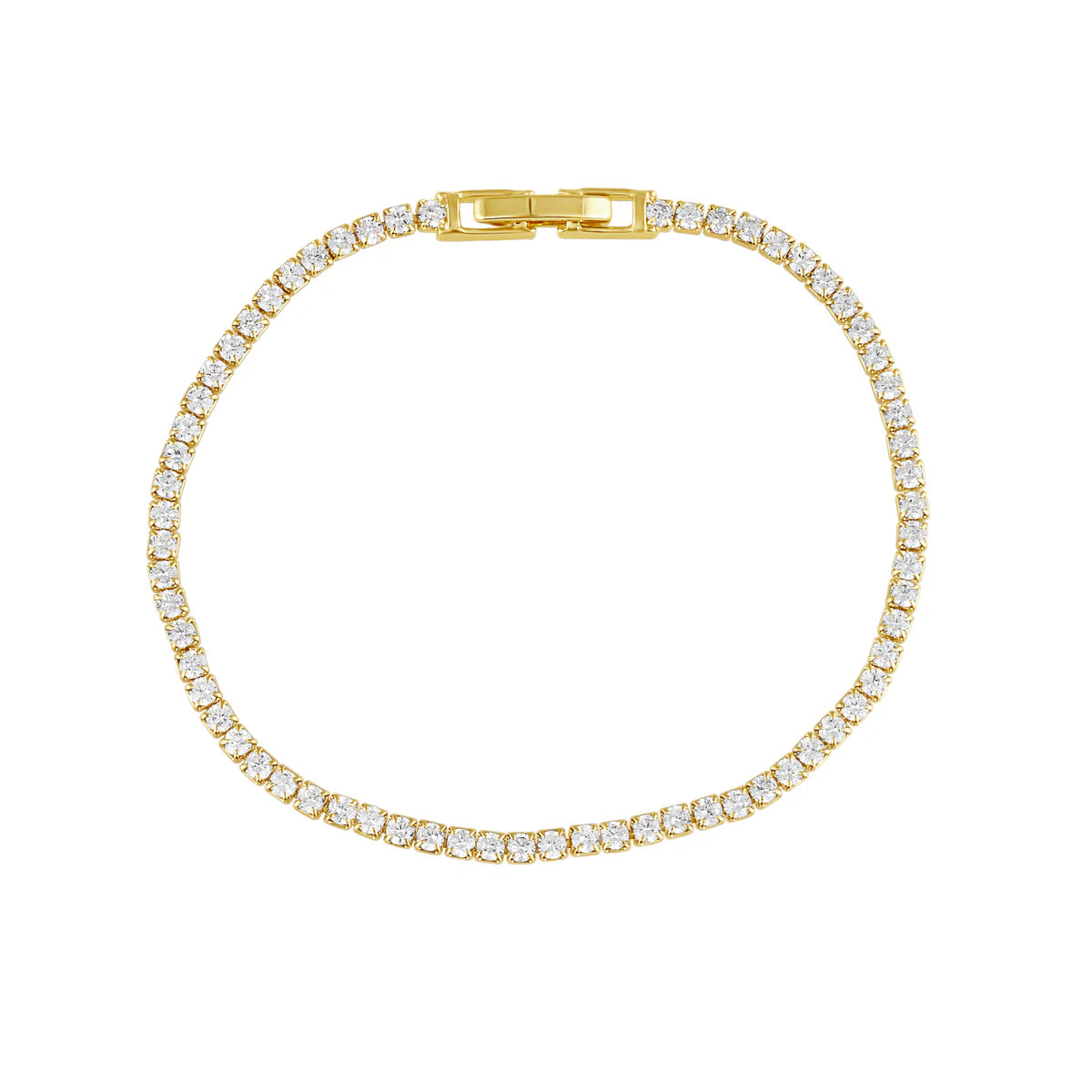 The Annie Tennis Bracelet offers a delicate and elegant touch to any outfit. Its slender design ensures comfortable everyday wear while adding a subtle sparkle that complements both casual and formal styles. Perfect for those who appreciate refined simplicity, this bracelet enhances your look with grace and confidence.