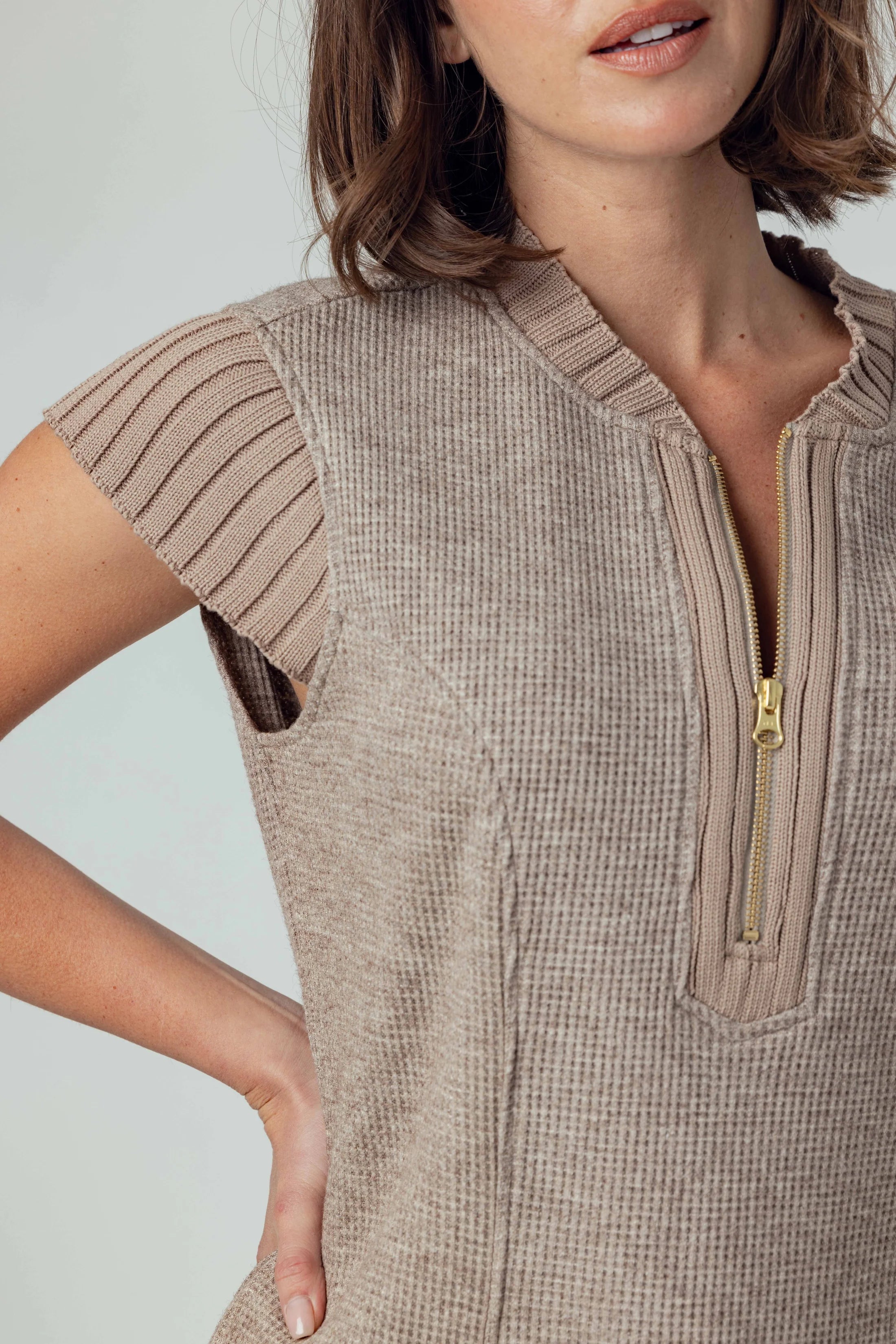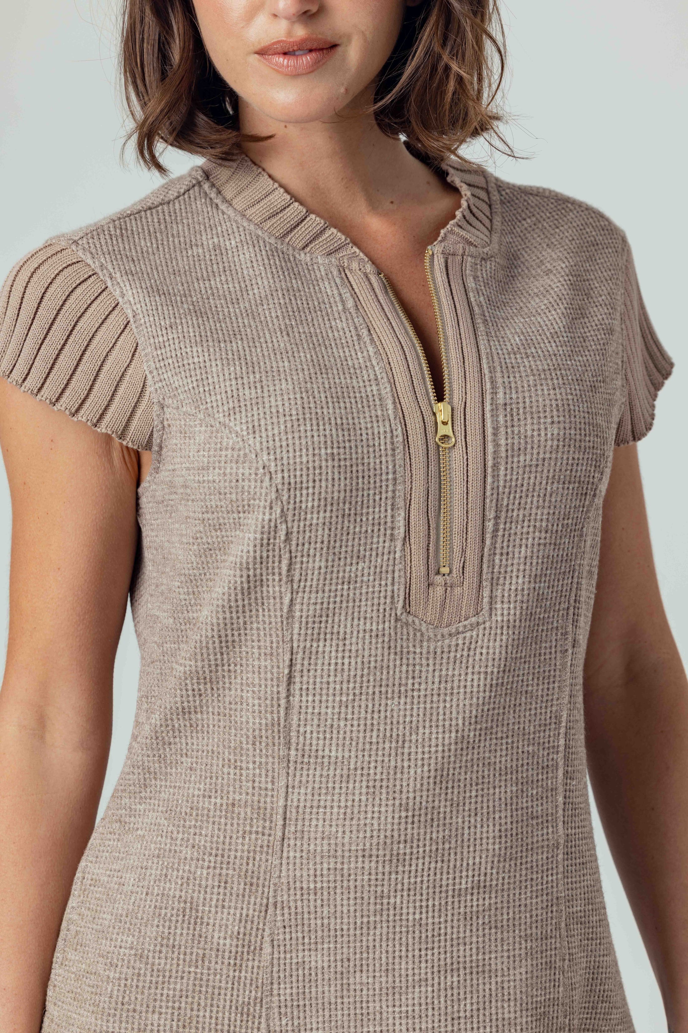 The fabric you love—lux thermal—now in a fresh new silhouette. Leilani features a 1/4 zip ribbed placket and collar, cap sleeves, and princess seams for added shape and subtle femininity. Finished at mid-thigh on most wearers, Leilani is considered true to size.